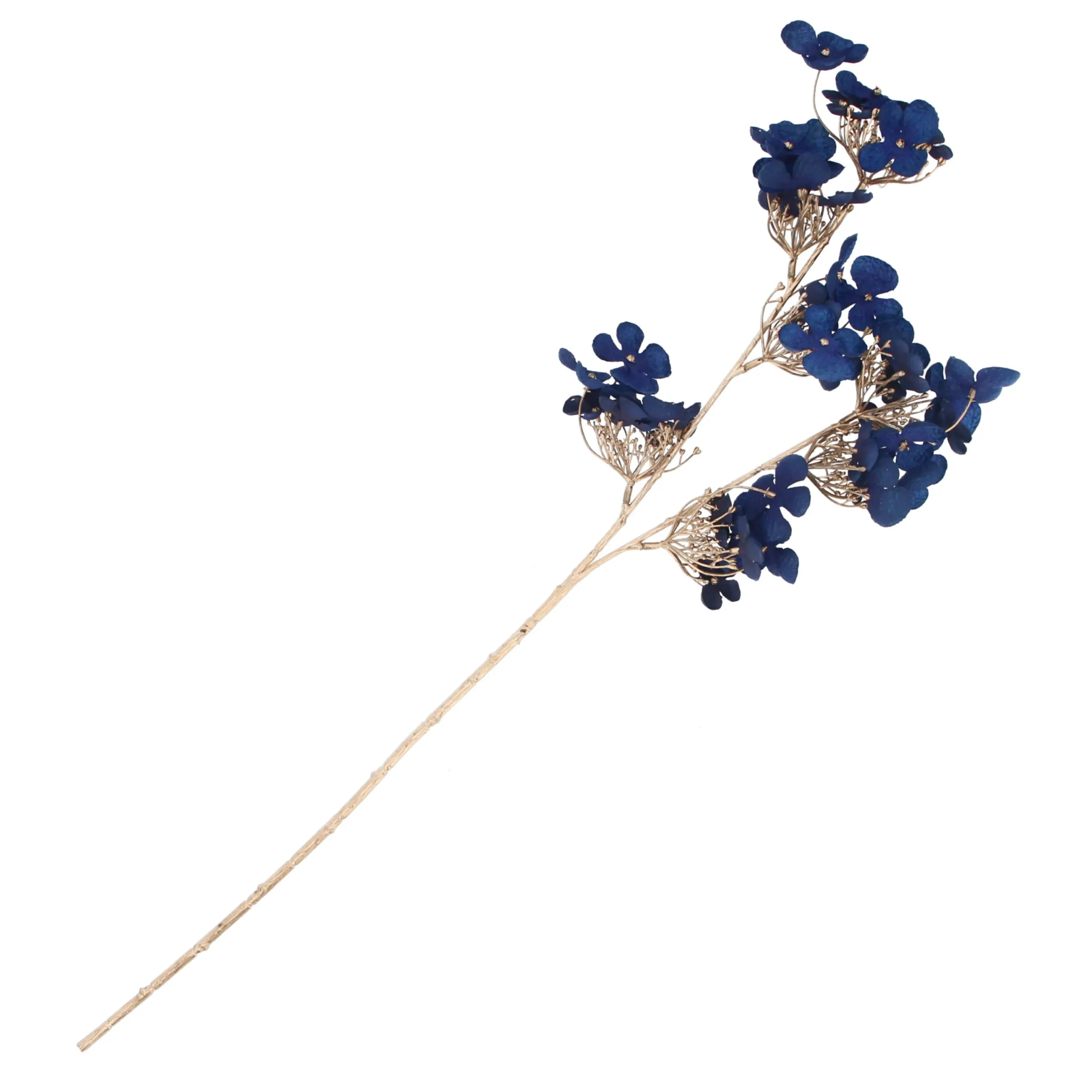 Elevate Your Decor With The Enchanting Blue Fabric Hydrangea And Gold Glitter Stem, Blending Natural Beauty And Festive Glamour In One Exquisite Floral Accent.